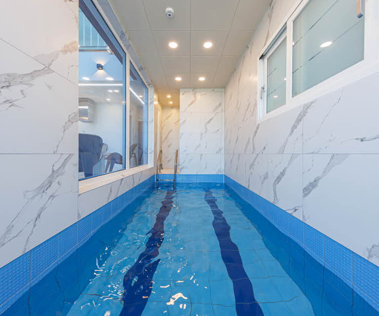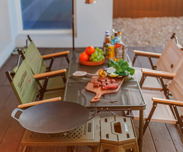 1층: 개별수영장 + 원룸형 거실/주방 + 테라스(바비큐) + 화장실(비데)+화장실
