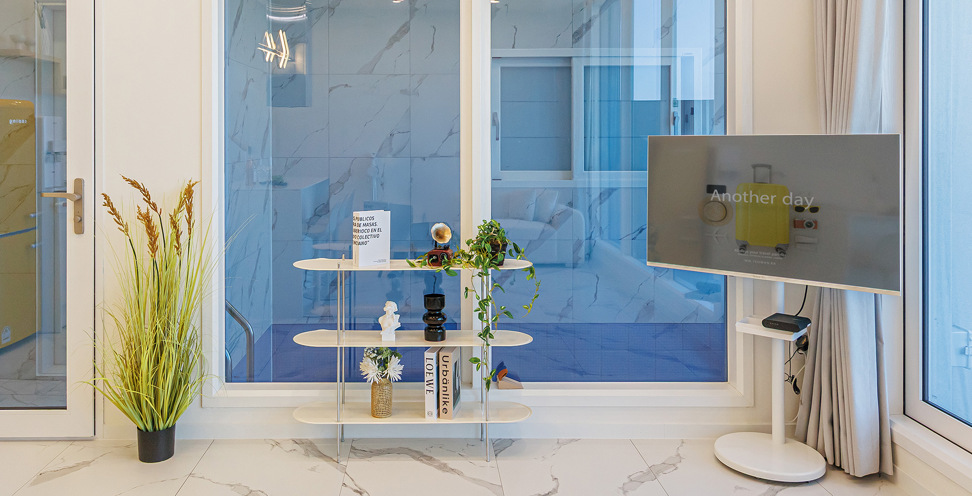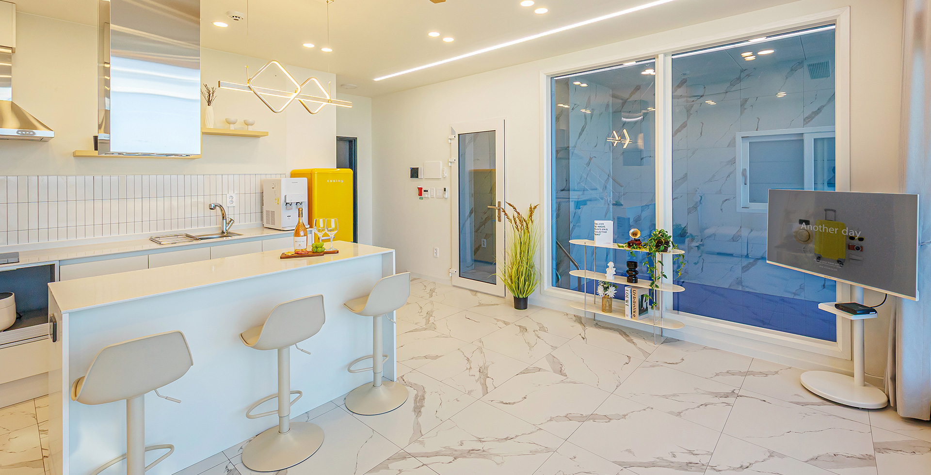 1층: 개별수영장 + 원룸형 거실/주방 + 테라스(바비큐) + 화장실